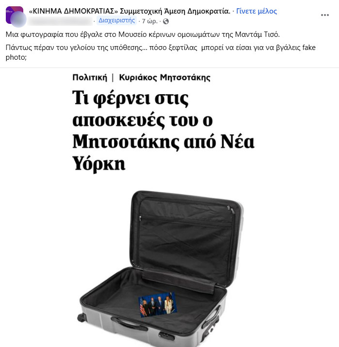 Τα δημοσιεύματα σε ορισμένα μέσα ενημέρωσης ότι πρόκειται για φωτογραφία κέρινου ομοιώματος είναι εντελώς ανακριβή, κακόβουλα και με σαφή τάση δυσφήμισης.