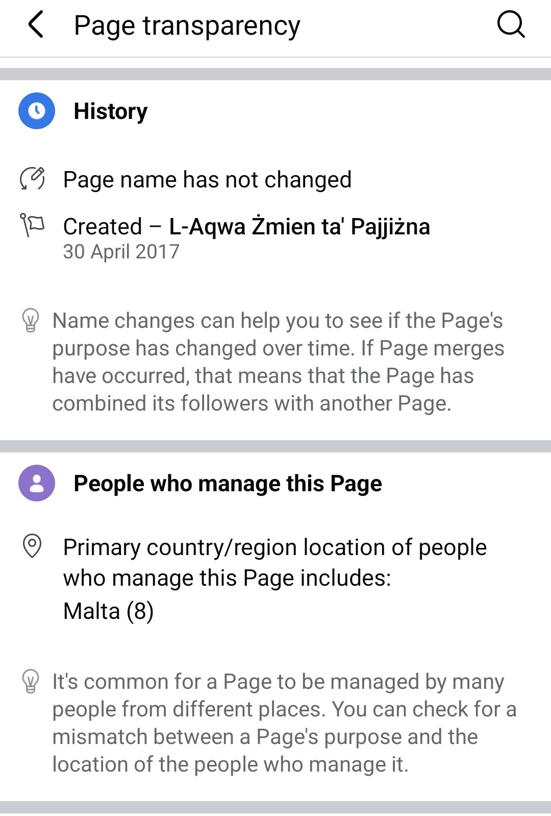 The original source of the AI-generated images is not clear, but when we ran one of them through the Google Lens reverse image search tool, we came to a Facebook page entitled ‘L-Aqwa Żmien ta’ Pajjiżna’ (‘The Best Time of our Country’), a reference to the Labour Party’s 2017 election campaign slogan. The page bears Facebook’s verification badge, which can either mean that it was verified by the platform based on its activity or that it is a paid subscriber of Meta Verified. Its ‘Page transparency’ information shows that it was created in April 2017, the same month as the launch of the Labour Party’s campaign for that year’s election. The page has a following of 13K, but it only follows four pages itself, namely a minister and pages that claim to represent a ‘paper brand’, a ‘childcare centre’ and a ‘contemporary artist’.